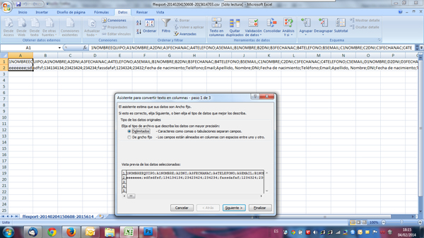 - En el menú emergente tildaremos "Delimitados", y luego "Siguiente"